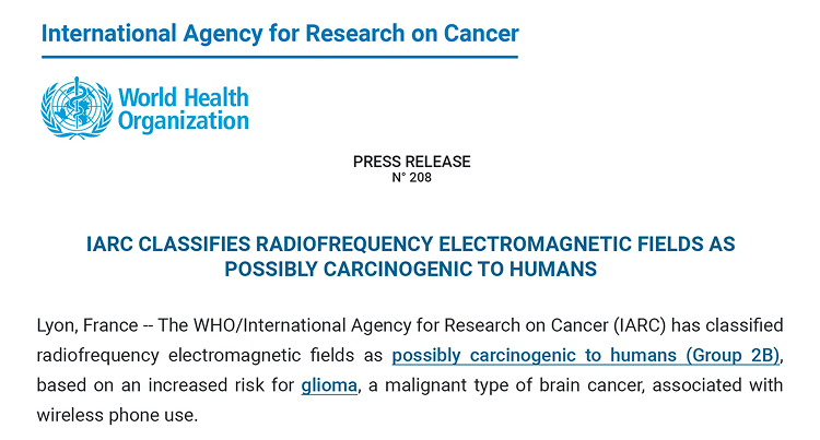 Even the World Health Organization (WHO) has classified EMFs as Class 2B “possible carcinogens”